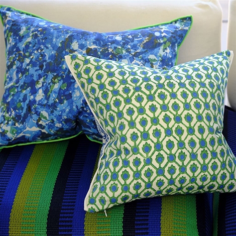 色彩豐富的創新大理石紋抱枕,反面搭配紮染圖案。這款戶外抱枕以數位印花印於防潑水、抗汙及防黴帆布,可使用機器水洗。尺寸60x45cm。全3色。