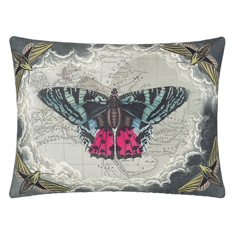 設計師John Derian經典的蝶古巴特風格,帶有異國風情的長頸鹿與蝴蝶印花棉麻抱枕。尺寸60x45cm。共1色。