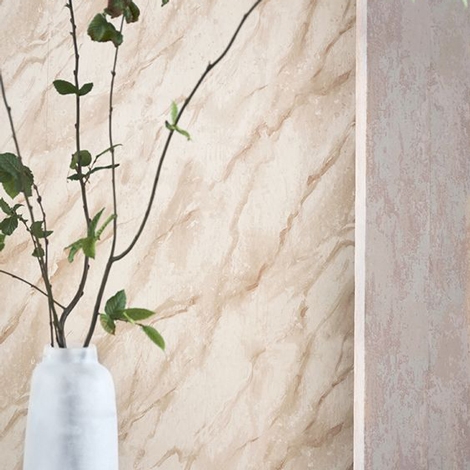 重現手繪的卡拉拉大理石紋和古董壁畫上的紋理,這種永恆的美麗設計以凹版印刷於不織布底。