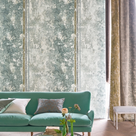 以石膏般層層堆疊的現代紋理效仿16 世紀的威尼斯宮殿,數位印製在厚實的不織布底,容易安裝。