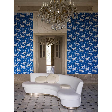 織品設計師Irène Rohr於1945年為Pierre Frey創作的畫作,保存在工作室檔案中。使用傳統印花技術,圖案讓人想起奔馳於法國南部的卡馬格馬。幅寬68cm。適合做為壁紙使用。共3色。