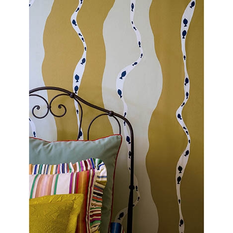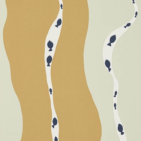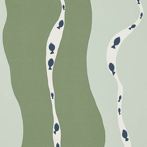 來自Pierre Frey工作室收藏的檔案。條狀的波浪印花描繪了退潮時和外海之間的平靜水面。幅寬52cm。適合做為壁紙使用。共3色。