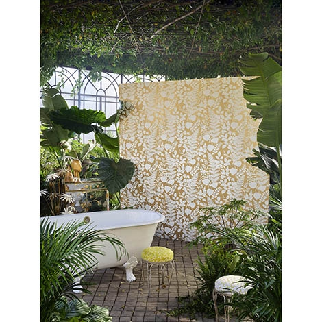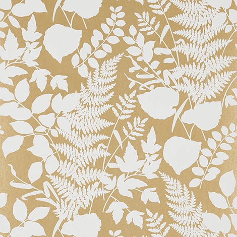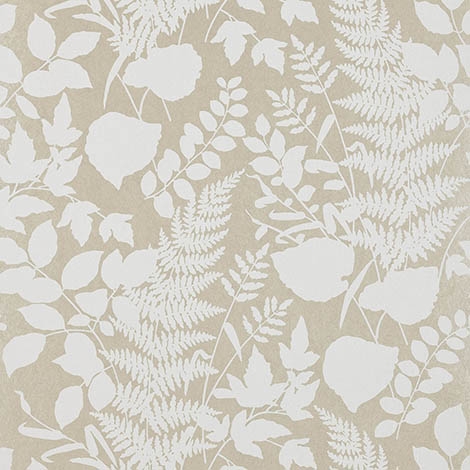 帶有手感的蕨類植物圖案結合金屬色顏料,使用傳統印刷技術。幅寬68cm。適合做為壁紙使用。共2色。