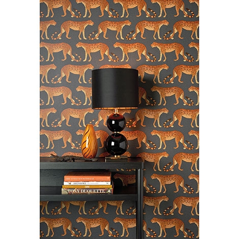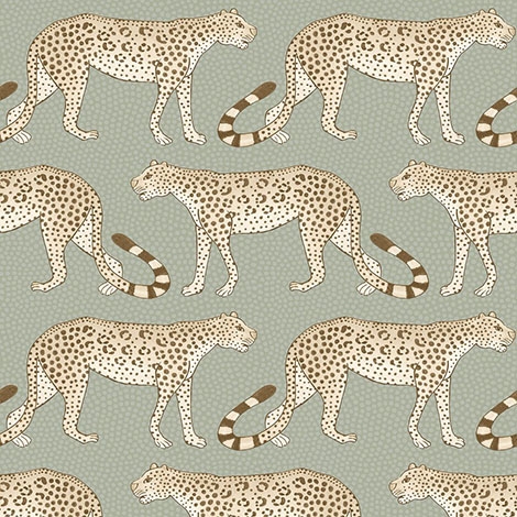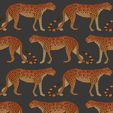 最初由Ardmore藝術家Punch Shabalala繪製,踏著節奏、左右行走的花豹圖案。適合作為壁紙使用。尺寸52x1005cm。共5色。