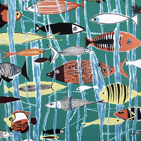壁紙採用數位印刷,色彩鮮艷的水中世界圖案與布料LAGON相同。尺寸寬70cm。共2色。