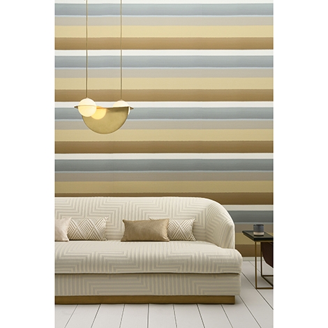色調柔和的條紋圖案讓人聯想到美國著名抽象表現主義畫家的作品。尺寸寬98cm。適合作為壁紙使用。共3色。