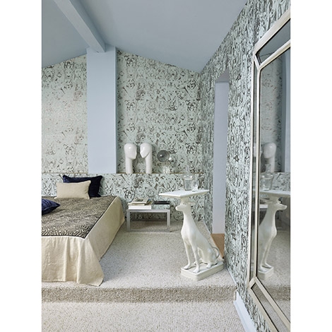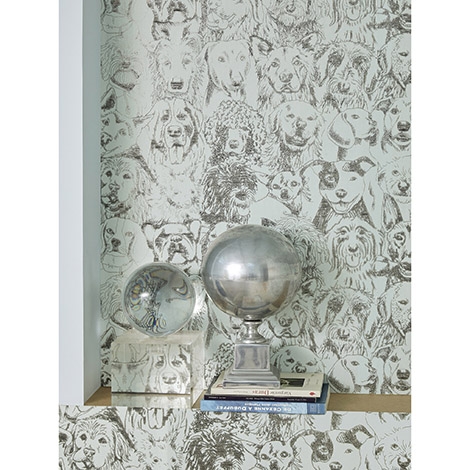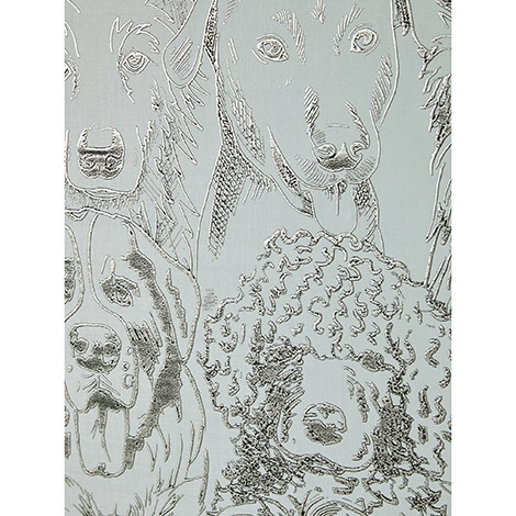 狗是室內設計師Ken Fulk最喜歡的動物,使用數位印花印於金屬色背景。尺寸寬90cm。適合作為壁紙使用。共3色。
