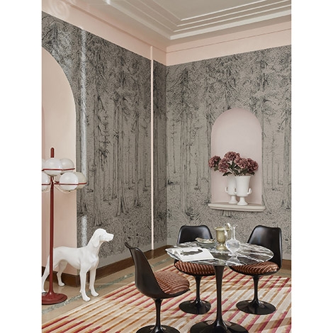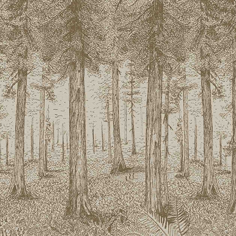 曾經在西北半球的大部分地區生長,但今天僅在美國北加州和俄勒岡州的沿海地區看到,古老的紅杉林描繪於植物纖維布底。尺寸寬140cm。適合作為壁紙使用。共2色。