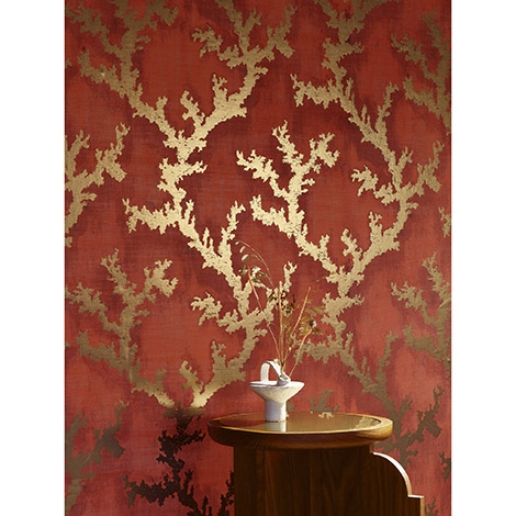 帶有金屬光澤的珊瑚圖案。尺寸寬90cm。適合作為壁紙使用。共3色。