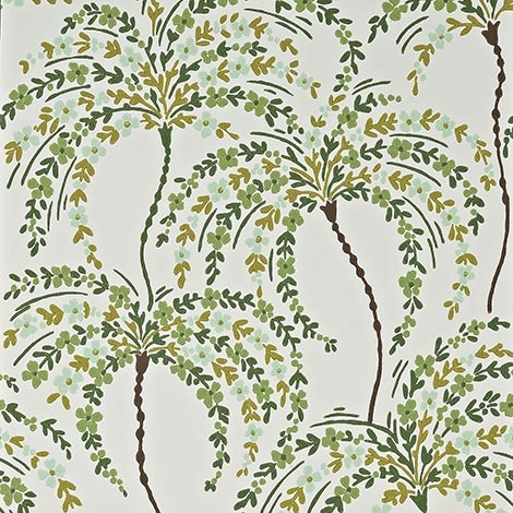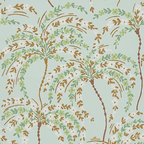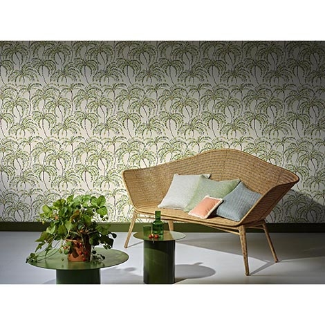 靈感來自Pierre Frey檔案中的水粉畫,有趣的描繪了棕櫚樹。尺寸寬52cm。適合作為壁紙使用。共5色。