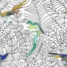 17世紀流行的植物圖案裝飾,讓人想起散步於鄉村步道中的景色,不同的配色代表了不同季節。尺寸寬134cm。適合作為壁紙使用。共4色。