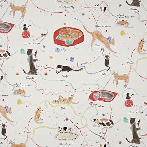 由12歲小孩Colette所繪,正在玩毛線球或睡覺的貓咪家族。尺寸寬137cm。適合作為壁紙使用。共1色。