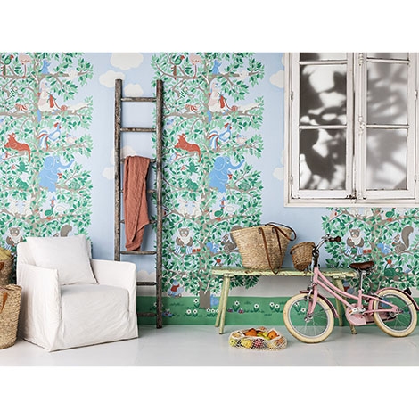 許多動物都棲息在這棵雄偉的大樹上。尺寸寬70cm。適合作為壁紙使用。共1色。