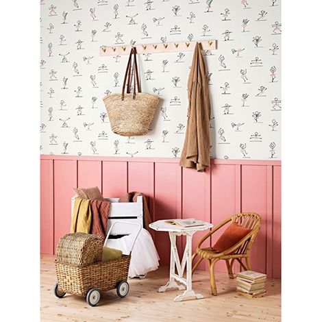 由12歲小孩Gabrielle所繪,穿著舞裙、翩翩起舞的芭蕾舞者刺繡。尺寸寬136cm。適合作為壁紙使用。共1色。