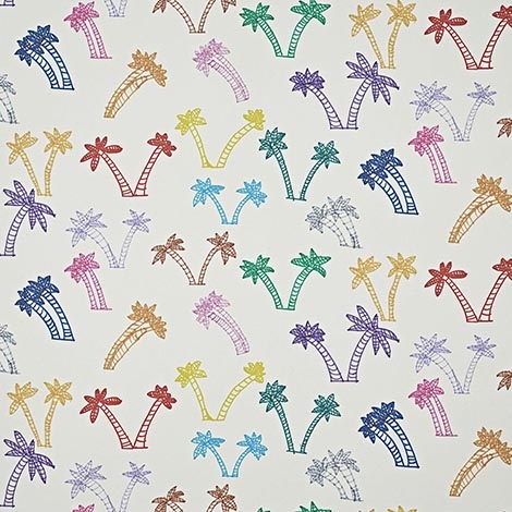 由6歲小孩Andréa所繪,舞動的彩色棕櫚樹刺繡。尺寸寬137cm。適合作為壁紙使用。共1色。