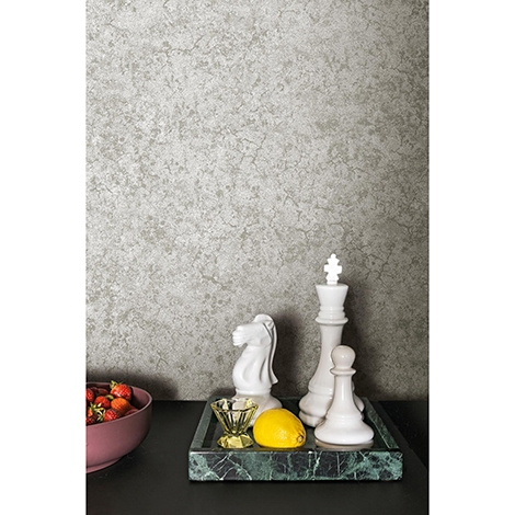 靈感來自古老牆壁紋理,帶有金屬色調。適合作為壁紙使用。尺寸寬135cm。共5色。
