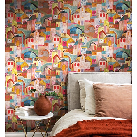 兩座橋,一條運河,威尼斯哥德式的窗戶。色彩繽紛的威尼斯島嶼Burano。適合作為壁紙使用。尺寸寬68cm。共2色。