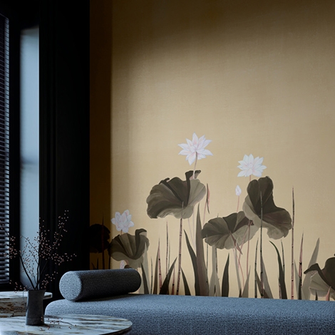 向畫家莫內的睡蓮畫作致敬。適合作為壁紙使用。尺寸寬280cm。共3色。