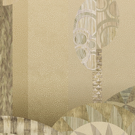 由幾何圖形組成的森林與山丘景色。適合作為壁紙使用。尺寸寬280cm。共3色。