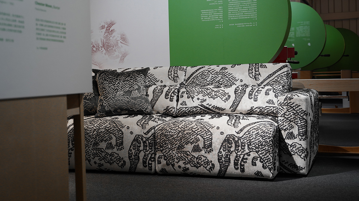 而在展廳的另外一處,可發現工一設計的張豐祥設計師的心頭好,選用威尼斯國寶布藝品牌 RUBELLI 的抱枕設計。