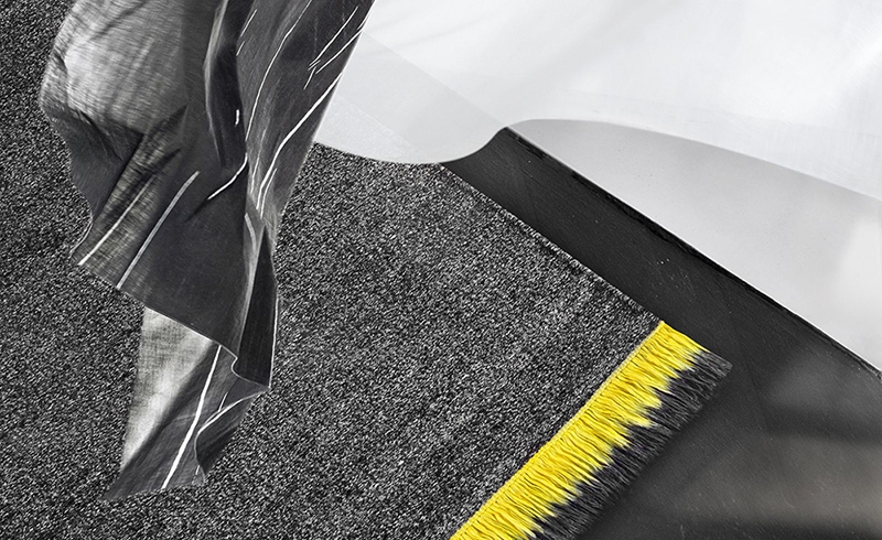 BOND,TWIST,TASSEL,FLUX 地毯系列 探索不同花紗交互作用可達到的結構。 這反映出,地毯可呈現不同層級的灰度等級,讓空間場域能感受更細膩的層次。